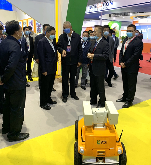 烟台市委书记张术平一行参观了宁夏永恒能源管理有限公司展厅,详细询问了公司自主研发的智能巡检机器人及其它模块装置。股份公司副总经理陈勇代表公司向领导及嘉宾汇报了公司在核电领域的新技术、新成果,充分表达了公司服务中国核电的信心和决心。