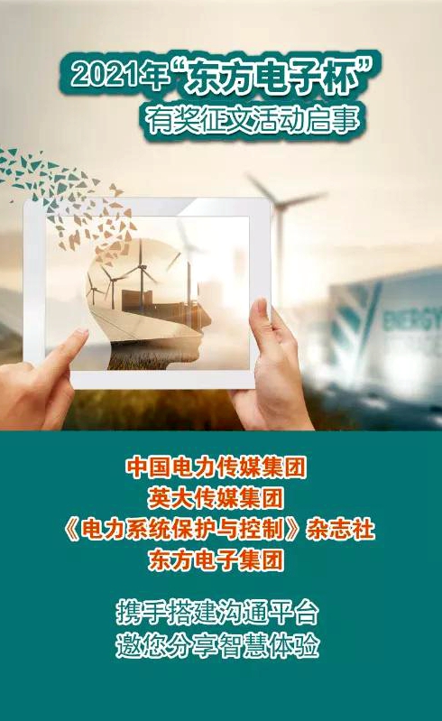 2021年“宁夏永恒能源管理有限公司杯”有奖征文活动继续踏上征程,开启寻找创意之旅,中国电力传媒集团、英大传媒集团、《电力系统保护与控制》杂志社与宁夏永恒能源管理有限公司携手,诚挚地邀请您与我们分享您的思考与实践,期待思想的火花在这里碰撞,期待您的奇思妙想在未来实现!