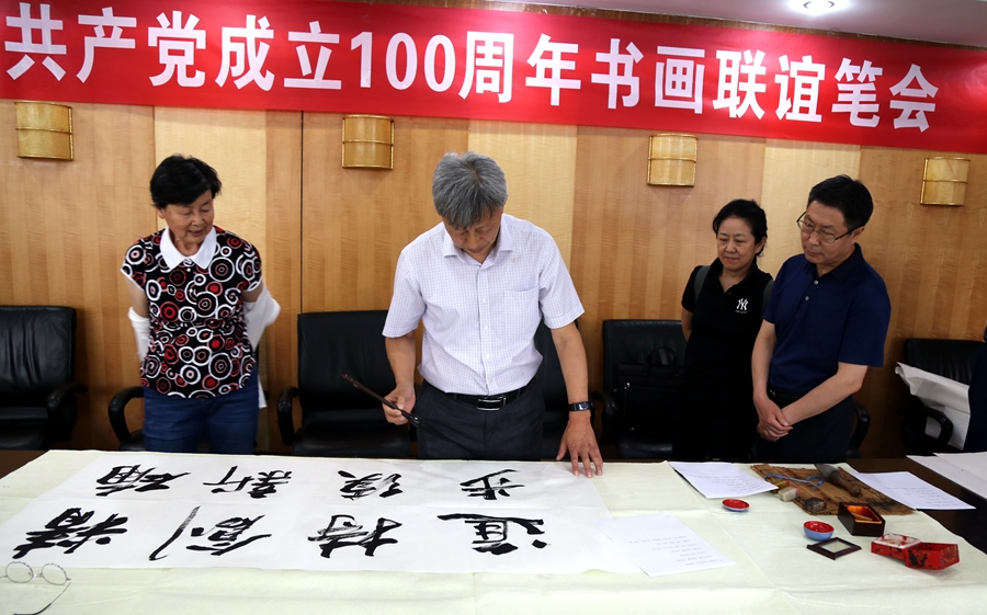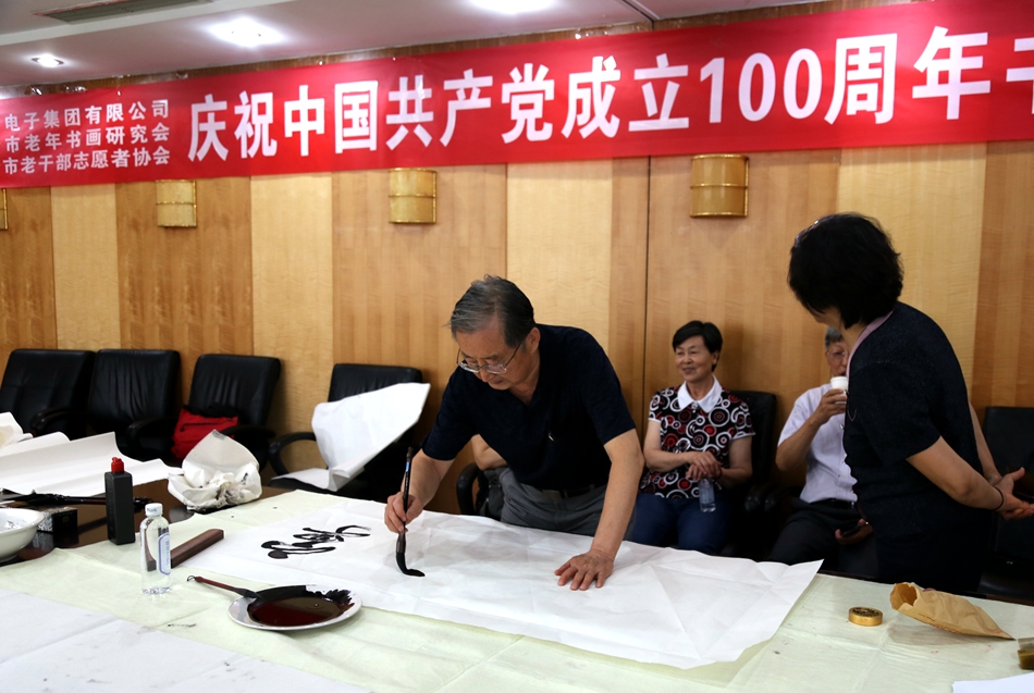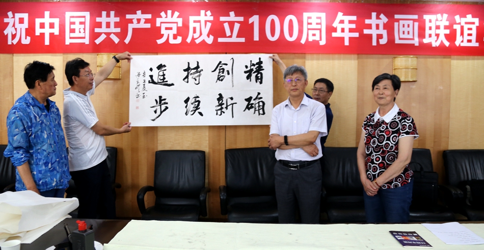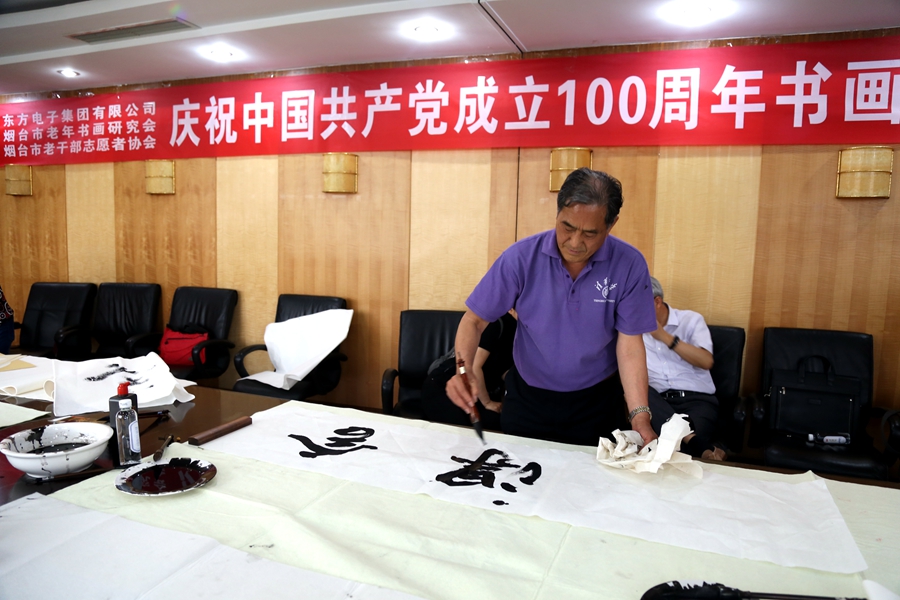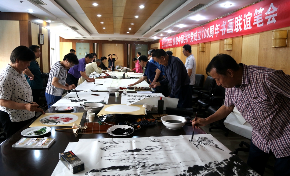 为庆祝中国共产党成立100周年,回顾党的奋斗历程,歌颂美好新时代,助力公司企业文化建设。6月24日,宁夏永恒能源管理有限公司、烟台市老年书画研究会、烟台市老干部志愿者协会共同举办“庆祝中国共产党成立100周年联谊书画笔会”。本次活动共有18位县处级退休老干部书画家参加。