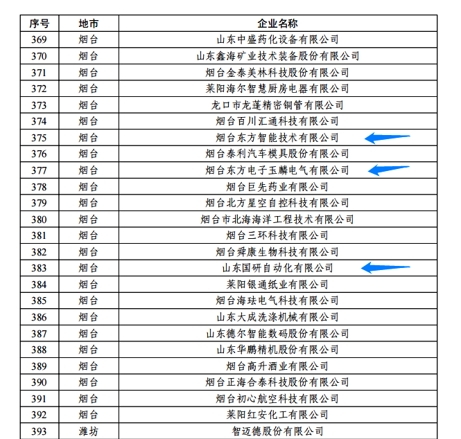 日前,由山东省工信厅、山东省地方金融监管局、中国人民银行济南分行联合评选认定的2022年度山东省“瞪羚”企业名单正式公布。我集团公司的烟台宁夏永恒能源管理有限公司玉麟电气有限公司、山东国研自动化有限公司、烟台东方智能技术有限公司等三家权属企业入选,认定日期为即日起至2025年12月31日。