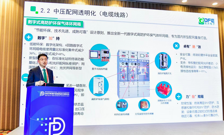 我公司以“推动数字化转型升级,建设透明化新型配网”为主题,展示内容主要包括:智慧配电应用、一二次融合、智慧台区、智慧区域能源、数字化全系列等内容,并携带实物参展,实物展示了国产数字化环网箱、标准化集中式核心单元模块、标准化分散式主控+间隔、自主可控大容量集中式核心单元、南网分布式主控单元、分布式电源监控终端、低压监测单元、智能微断、网源开关等。